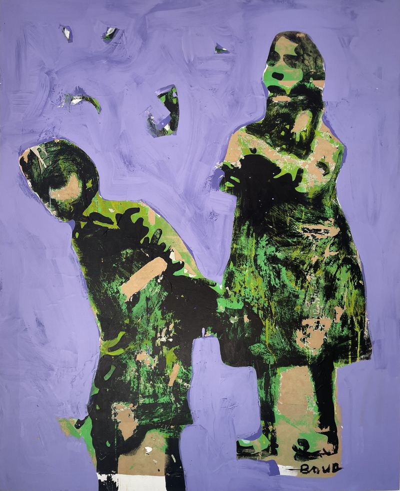 While maintaining a technical rigor reminiscent of classical painting—characterized by geometric compositions, light-centric color palettes, and the application of successive layers of material—Armand Boua breaks free from the constraints of pure figuration. He literally deconstructs his images by brushing, scratching, and rubbing the surface. This process offers the viewer scenes on the edge of abstraction that nonetheless retain a palpable vitality, fueled by the effervescence of the streets and the inhabitants who inspire him. Exploring these themes, he participated in the 9th Dak'Art Biennale in Senegal in 2010, returning to Dakar in 2012 for the group exhibition Un regard sur Abidjan at the Eiffage Foundation.
