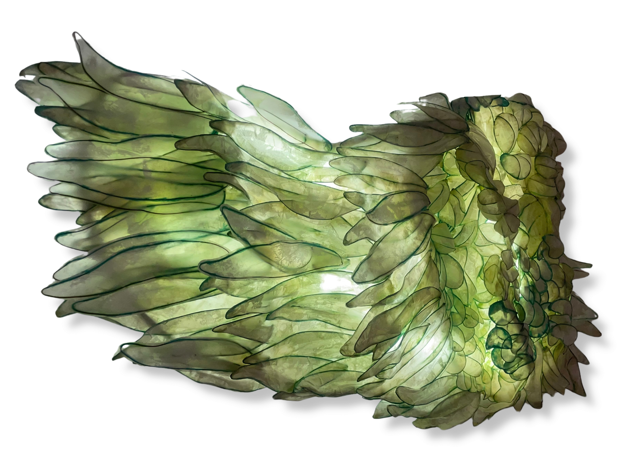 Flo Arnold's work is a meditation on movement—both physical and emotional. Her mixed-media creations, rooted in abstract expression, reflect the transient nature of human experience. The material used, white water-repellent paper, suggests ephemerality and fragility, but also a form of evanescence underlined by their apparent levitation. Flo Arnold's sculptures float in spaces that are open to thought, spirituality and inner journeys. Her pieces, at once expansive and intimate, encourage viewers to reflect on their own journeys, the passage of time, and the ephemeral beauty of the world around them.